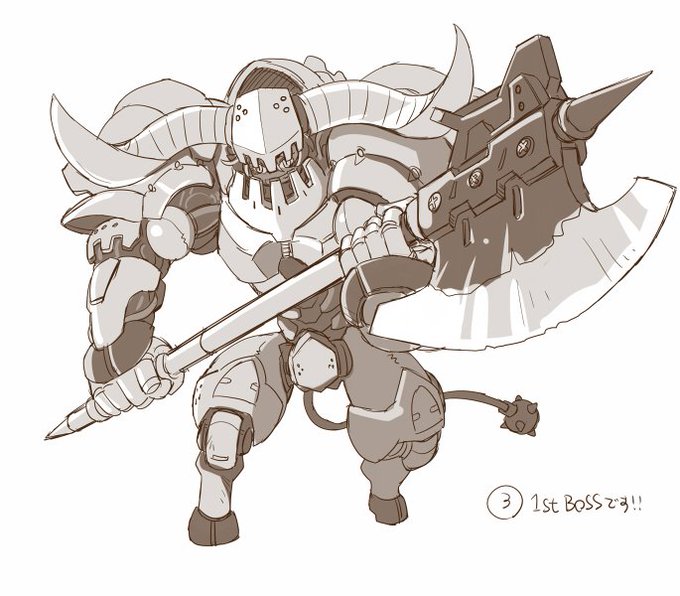 細かいデザインを詰めてる時間も描いてる余裕もないので雰囲気重視でクリンナップしてるけどまぁこんなもんかな~。ゲームの敵キャラのデザインごっこしています