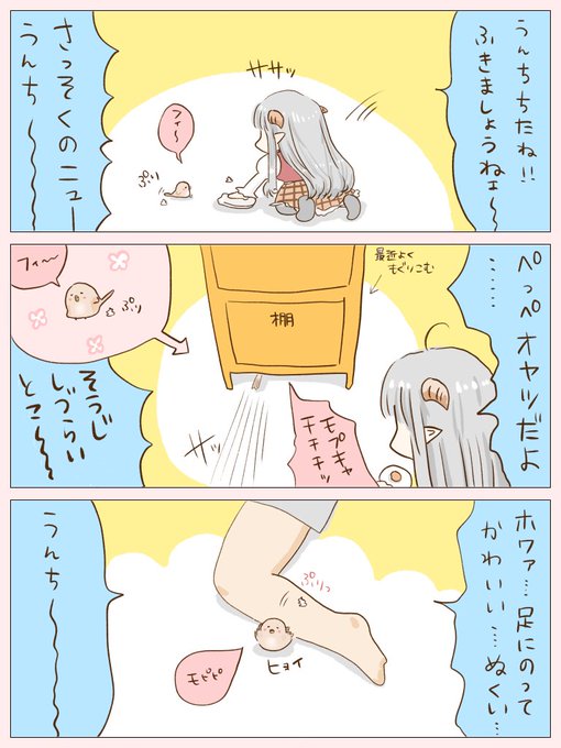 ぺっぺにあそばれている #ぺっぺのゆるいまんが #鳥 #四コマ漫画