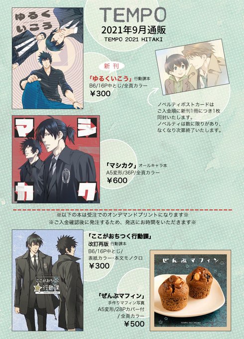 次回の通販のおしながきです。新刊が完成したら受付します。