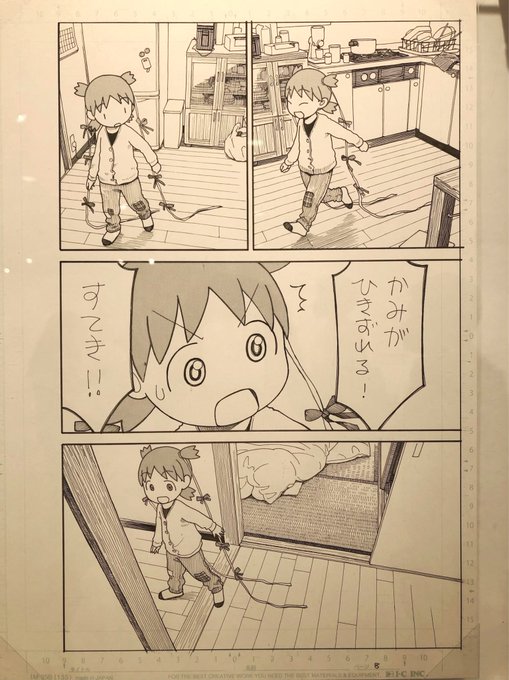すごいと知ってたつもりだけど、実物見るともうなんじゃこりゃという感じで...当たり前だけどこの線1本ずつ全部描いてるんだよな...原画展で1枚ずつ全部写真撮ったの初めて。資料用の靴やビーズが尊い。親子で来てる方で、息子さんがよつばと同じポーズとってたのも尊かった。