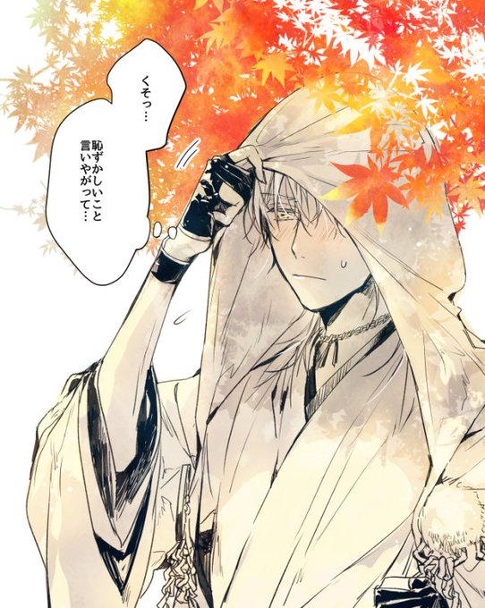 @uni_3232 アンケートで1%差だった笑顔も描いてみました!今度は三日月です。春は三日月が鶴丸を見つめているだけだけど、秋の鶴丸でついに想いを告げたみたいななんかそんな… #わたしの絵柄で笑顔恥じらい興奮泣き顔のどれが見たいですか
