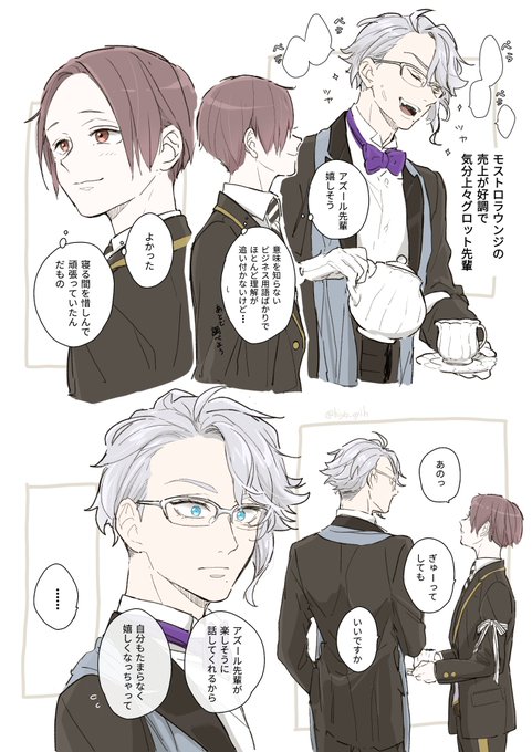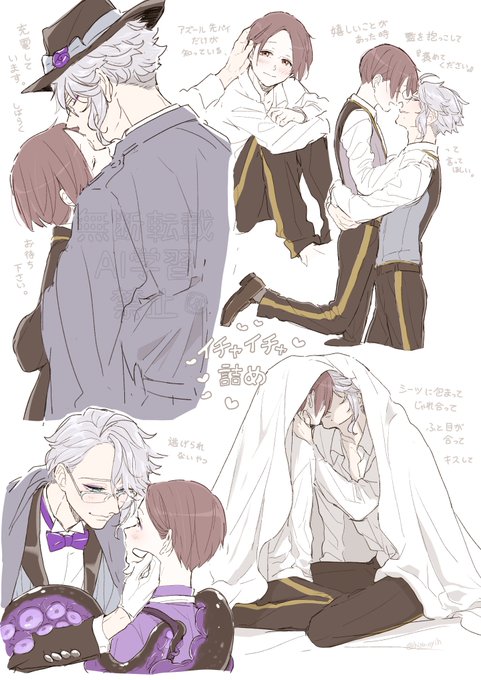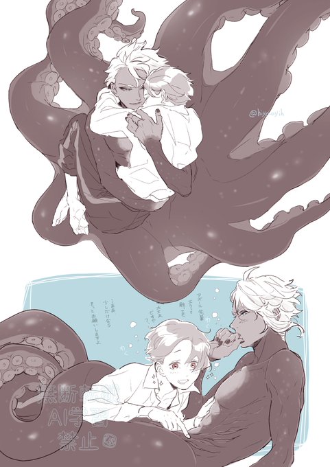 皆さん見てください…!!彬さん(@ akira51_)がうちの監と🐙先輩を描いてくださったんです!!😭✨大好きないちゃいちゃアズ監…!🫶
