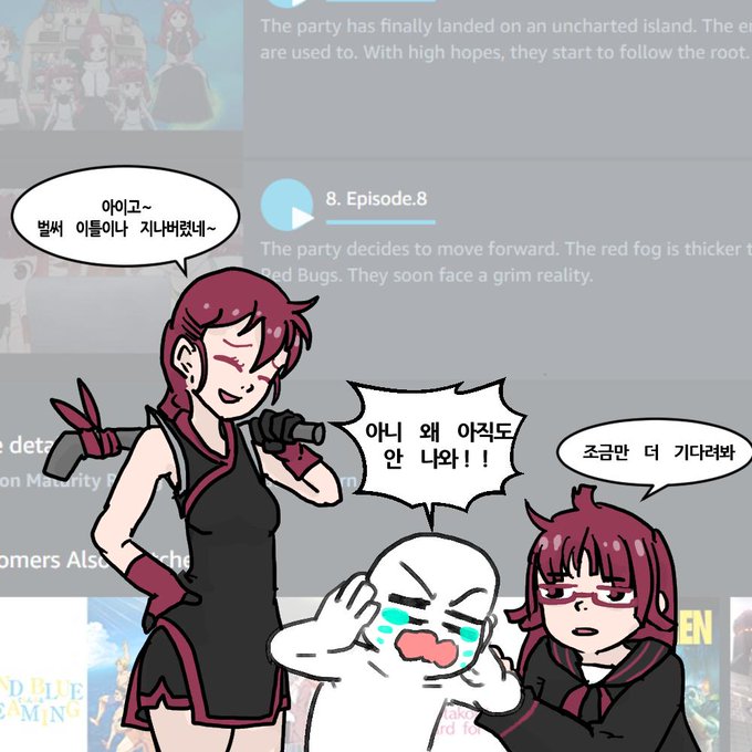 もう二日も経ちましたけど、まだ韓国ではケムリクサ9話がアマゾンプライムビデオに出ていません…サービスセンターの返事も受けましたけど、どうか週末までにはアップロードしてください😭😭他のファンの皆さんも待っています!