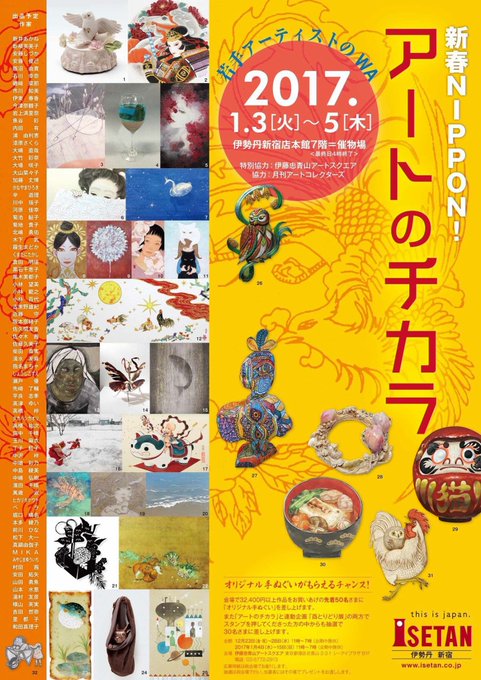 1/3から新宿伊勢丹にて開催の「アートのチカラ」に出品します。宜しくお願いします!