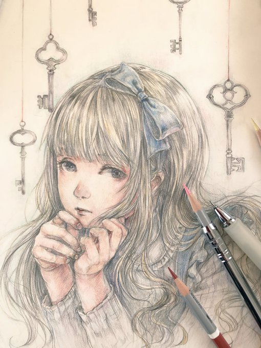 F3号、丸ペン、パステル、色鉛筆