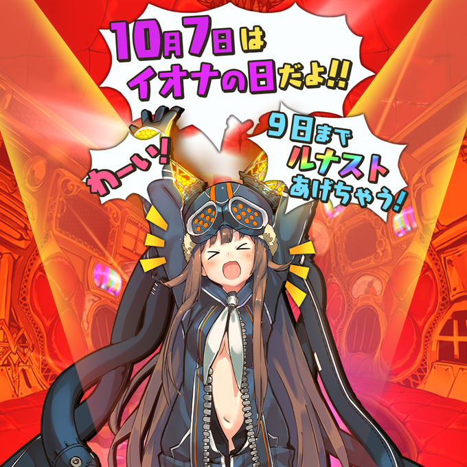 【お知らせ】10月7日はイオナの日!今日はイオナちゃんの誕生日なんだよっ!9日まで上機嫌のイオナちゃんからルナストがもらえるから忘れずにログインしてね♡すぺしゃるコールもやってるよ!なんとルナスト107個で10連コールができるんだって!#ラスピリ