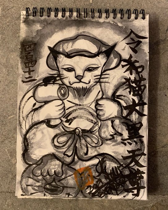 #drawing #ドローイング #令和猫大黒天尊 #新型コロナウイルス感染症退散撲滅 #ソーシャルディスタンス #イベルメクチン承認 #医療従事者支援 #災害消除 #猫絵 #猫仏 #cat
