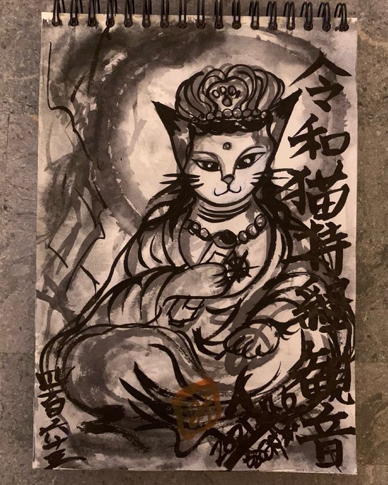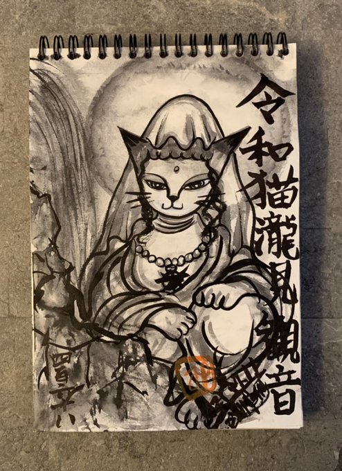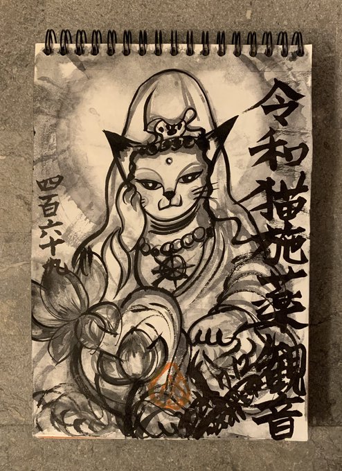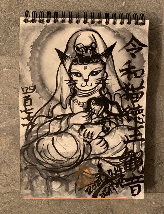 #drawing #ドローイング #令和猫瀧見観音 #新型コロナウイルス感染症退散撲滅 #ソーシャルディスタンス #イベルメクチン承認 #医療従事者支援 #災害消除 #猫絵 #猫仏 #cat