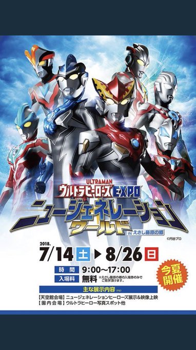 #ウルトラEXPO ニュージェネレーションワールド #藤原の郷 本日から開催!! 8月26日まで開催なので夏休みのお出かけに! #ウルトラマンルーブ や、ニュージェネレーションヒーローズ上映。フォトコーナーがいっぱいですよ! #ウルトラマンジード #ウルトラマンオーブ