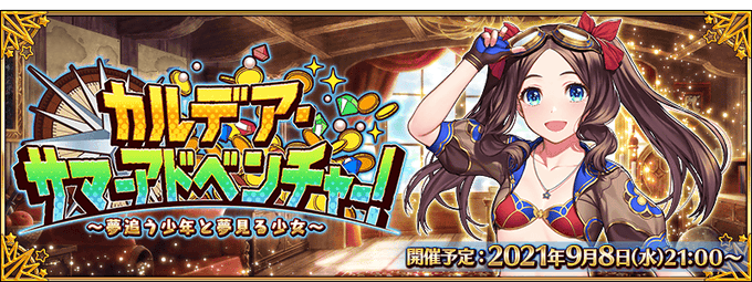 2021年9月8日(水)21:00より期間限定イベント「カルデア・サマーアドベンチャー! ~夢追う少年と夢見る少女~」開催!微小特異点となったカリブ海諸島を舞台に、とある海賊が残したとされる秘宝を探し出しましょう!詳しくは→https://t.co/W39XJFlGdG #FGO