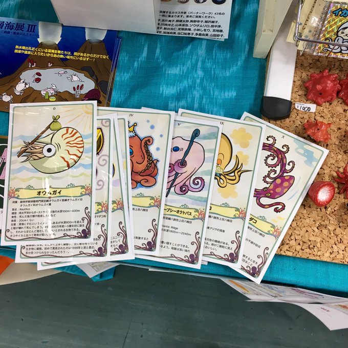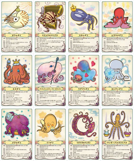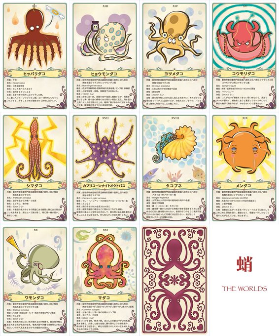 博ふぇすのガクタメでは、蛸をタロットカード様式のイラストと紹介文で蛸カードを作りました。マイナーな蛸に関しては情報が少なくて苦労しました(*_*)間違えてる情報もありそう…。カード自体は評判良かったので商品化を目論んでます!