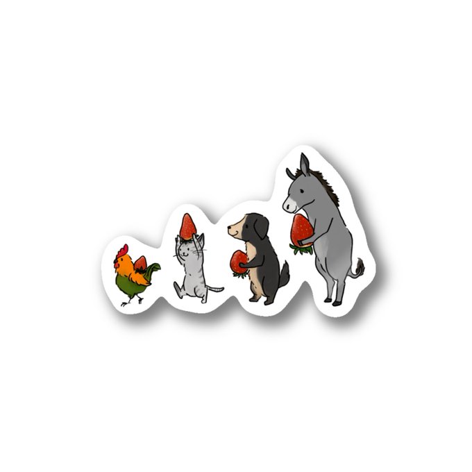 ブレーメンの音楽隊でいちごを運んでます。🐴🐕🐈🐓🍓🍓🍓🍓