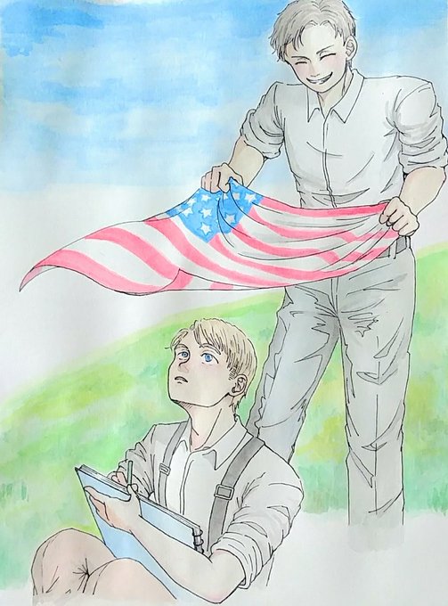 本当はもやしの顔に星条旗の柄が透けてる予定だったのですが、盛大に失敗したので、失敗前のやつです…