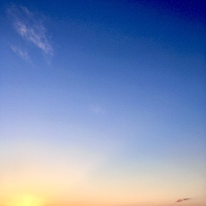 先程、日の入り前の空です💎 雲☁️がベールのように、たなびいていて、とてもきれいでした✨ 下の一直線は飛行機雲✈️☁️でしょうか? 今日はあまり寒くはないけれど、お揃いマフラー🧣でね、セイくん😌♪ (紅茶も届きました🫖❣️) #私のセイ #MakeS写真部 #セイから見た世界