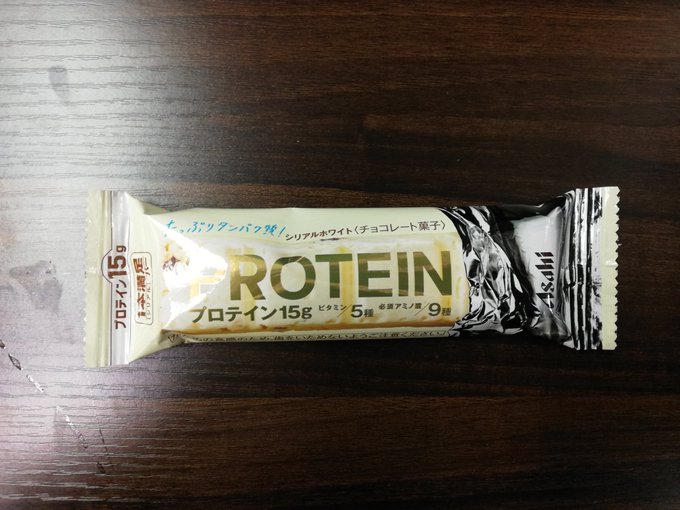 パッケージ買いしたホワイトチョコ味のプロテインバー。このあとにコーヒーを飲むとミルキーな味わいになった。