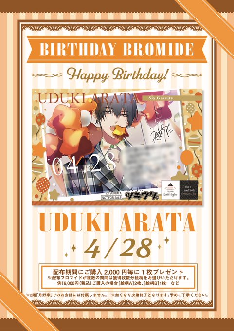 TSUKIPRO SHOPでお会計税込2,000円毎に1枚バースデーブロマイドをお渡しいたします。