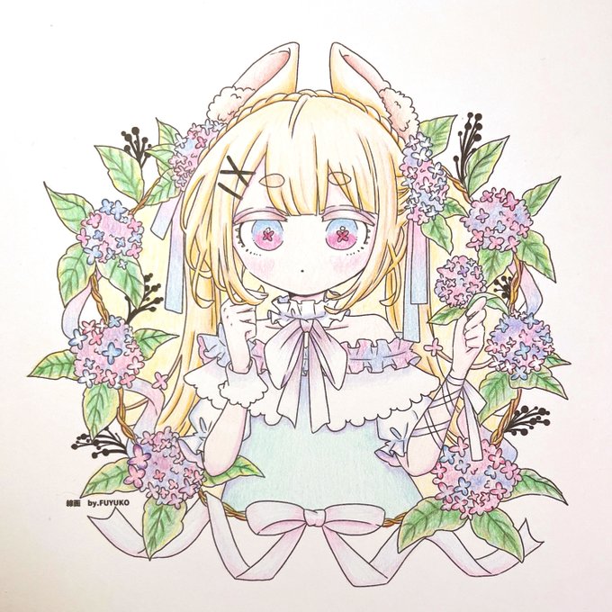 FUYUKOさん@fffuyuko のアジサイ線画に色塗りさせていただきました✨