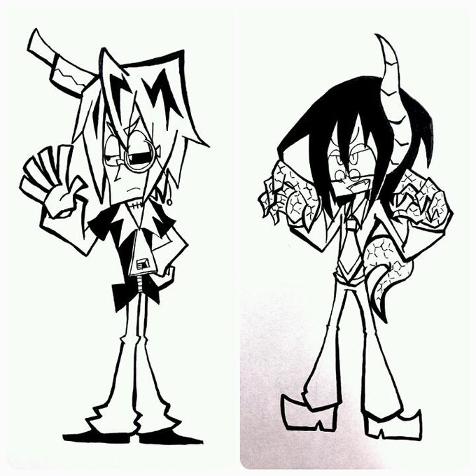 #デフォルメイラストだけで興味を持ってくれる方RT 絵が斜めになる癖がある(´-`) そんでもってきっくぅぅん すまぬかけんのじゃ