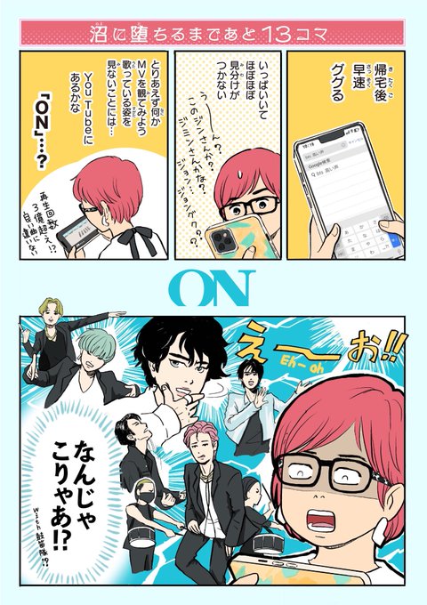 【その1】突然ですが、好きすぎるあまり漫画を描いてしまいました。自分でも困惑するぐらい、まるで落とし穴に落ちるみたいにドスンと好きになってしまった #BTS とにかく最初に観たMVが刺さりまくりコンボでした。趣味の独り言なので、これはいつもの #新報デザ漫画 ではありません😅