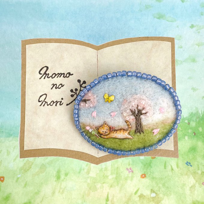 #みんなのニャンニャンニャンフェスティバル お花見団子持ちにも出来るにゃん🐱🍡 〈桜の木の下🌸お昼寝猫のブローチ〉 minne▷ https://t.co/BPsDDxCpM9 Creema ▷https://t.co/AXdVF6qU38