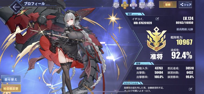 #メンテなのでアズレンプロフィールを無言で貼る