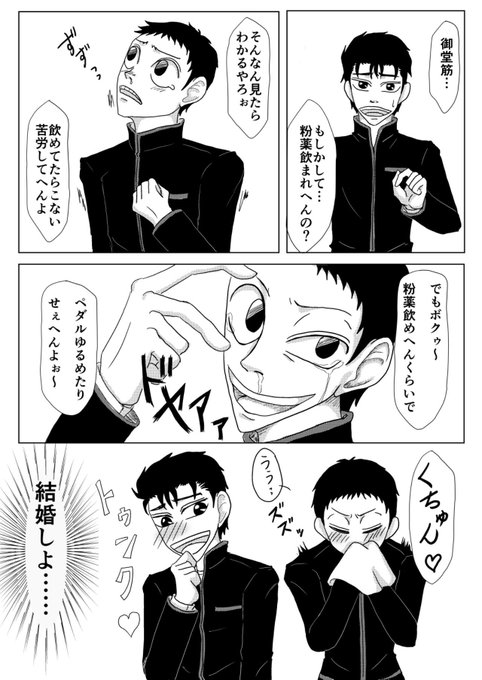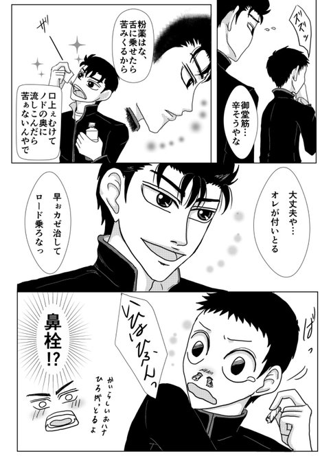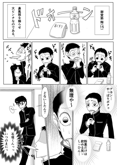しろくろさん(@shirokuro9291)と恐れ多くもネーム交換をしました。「粉薬の飲めない御堂筋君」をテーマに描きました♪