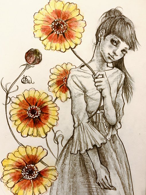 もう一枚、ハルシャ(村山早紀『黄金旋律』より)を描いたので、こっそりupしておきます…。花はハルシャギクのつもり…。以前、どなたかのツイートでハルシャギクというものがあると知って、。