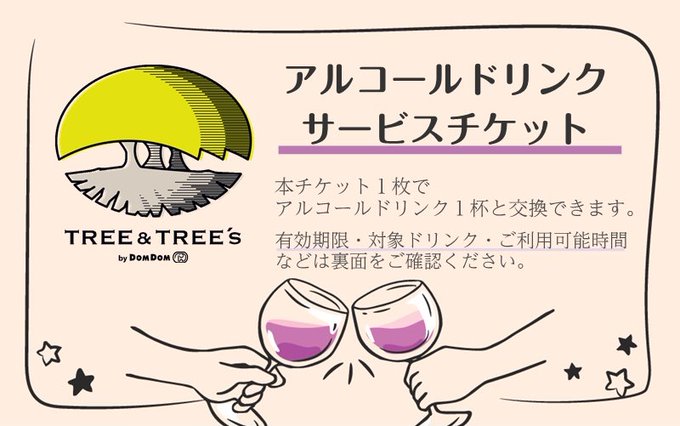 ツリツリ店舗にて「アルコールドリンクサービスチケット🍻」を期間限定で配布中です😲