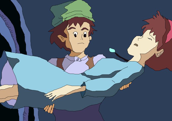 日付変わっちゃったけど、パズーとシータ #ザキ絵 #ラピュタ #バルス #ジブリ