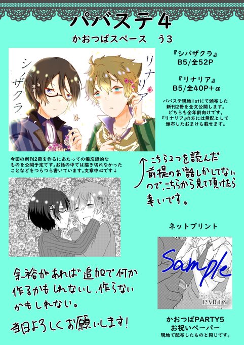 パバステ4のお品書きです!新刊2冊全文公開とそれの備忘録とペーパーのネップリになります!
