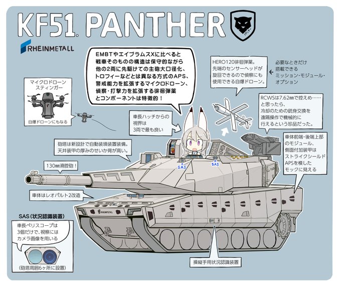 現用陸軍系ネタでは、6月に発表されたドイツの新戦車・KF51パンターの擬人化(by藤沢孝先生@fujisawa)、