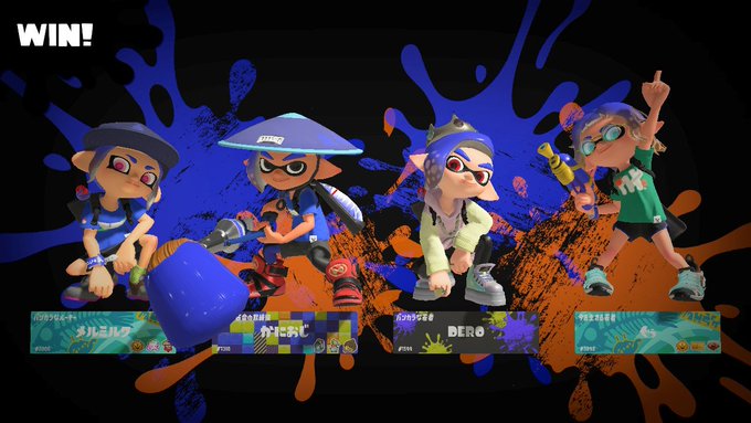 ヴィラン「20時50分から1試合だけだけどフレンドのかわさんとナワバリバトルをやったぜ😊めちゃ久しぶりに遊んでくれてしかも同じチームで同じ勝利ポーズできて嬉しかった😚💕俺以外皆フェスTなんだけど😂めっちゃ楽しかったぜ😆また遊んでくれよな🎶」