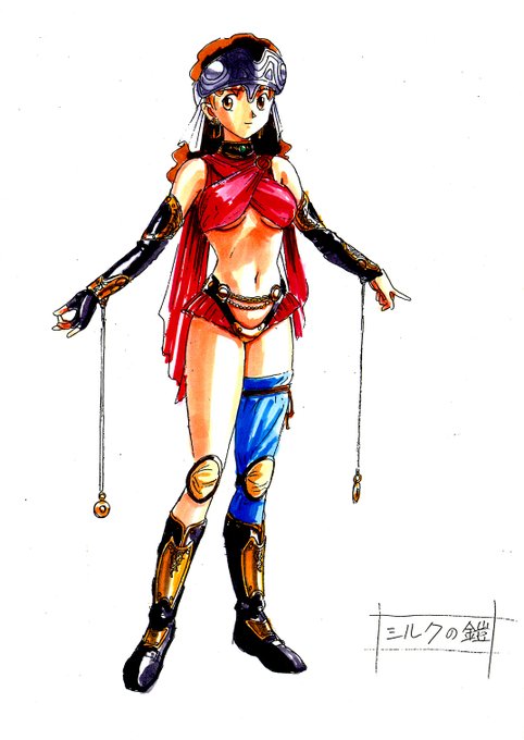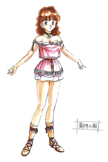 アニメ、ゲーム等で、着せ替えのための服のデザイン等をしておりました。こちらは『#プリンセスメーカー2』のためにデザインした娘さんの着替え衣装です。