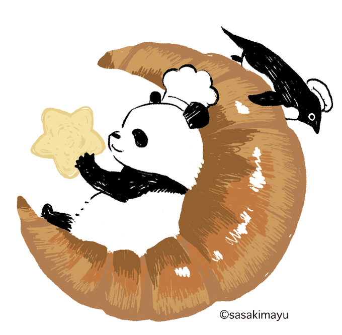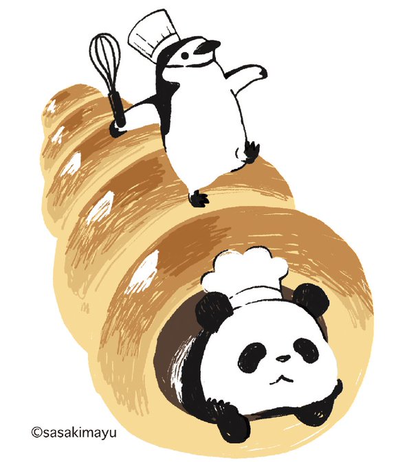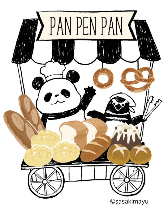 #ペンギンバザール で描いたパンダ×ペンギンパン屋の着せかえできました🍞 ペンギンバザールは明日から開催です‼️