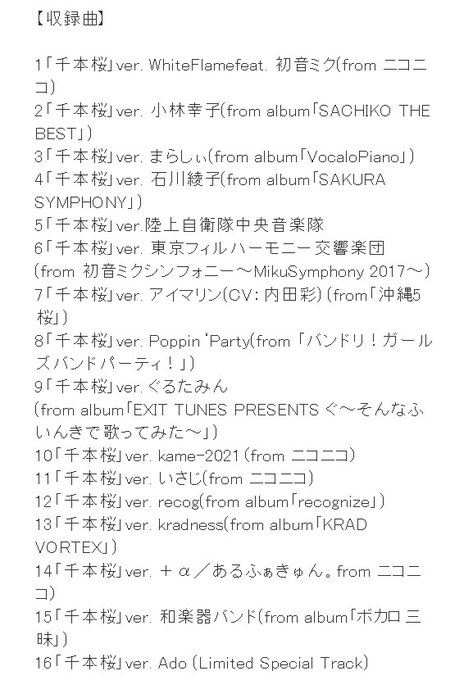 投稿から10周年になる #千本桜 の記念アルバム、収録曲は何と…"全曲千本桜"🌸