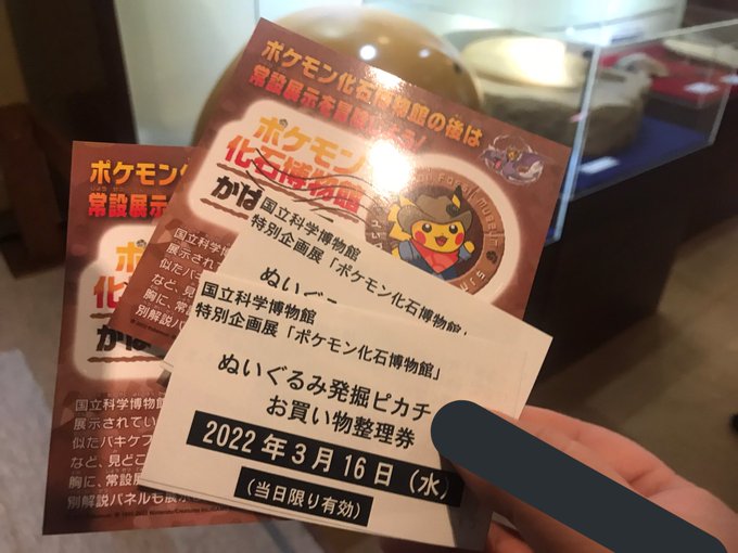 ポケモン化石博物館の限定プロモはありませんのでご注意☺️ぬいぐるみ発掘ピカチュウお買い物整理券って…そんなにぬい人気なんか?!メルカリで定価以下で売ってたがw