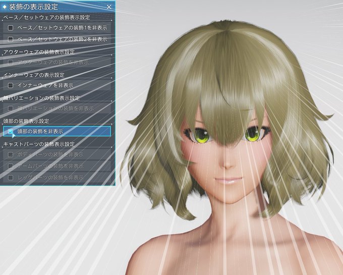 ポポナさんを再現できるヘアーです。再現以外にも使えます。装飾OFFはアホ毛