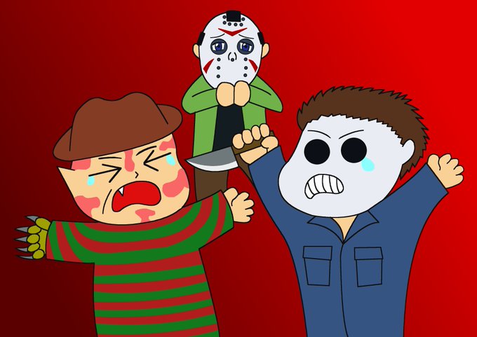 喧嘩するフレディ&マイケルとオロオロするジェイソン #フレディクルーガー #マイケルマイヤーズ #ジェイソンボーヒーズ