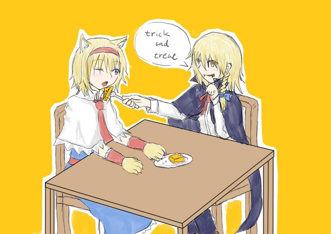 魔理沙「誰も選ばせてやるだなんて言ってないぜ?」アリス「・・・・この手じゃ何も出来ないから仕方ないから食べてあげるわ」 #マリアリ版深夜の真剣お絵描き60分一本勝負 うぉおん、また15分オーバー 吸血鬼魔理沙とネコ娘アリス