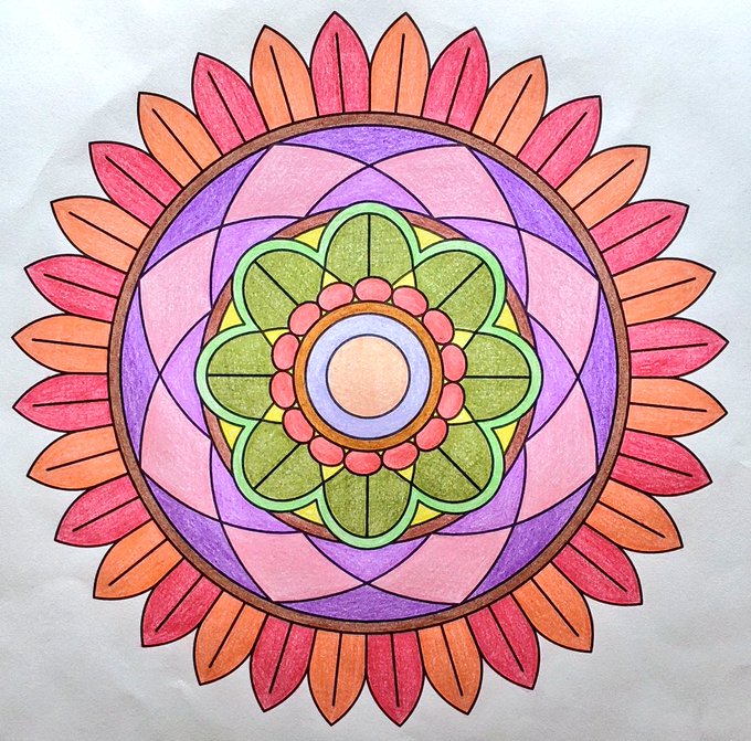 今日の塗り絵😊 お花🌸🌼のような図柄を一枚 #マンダラ塗り絵