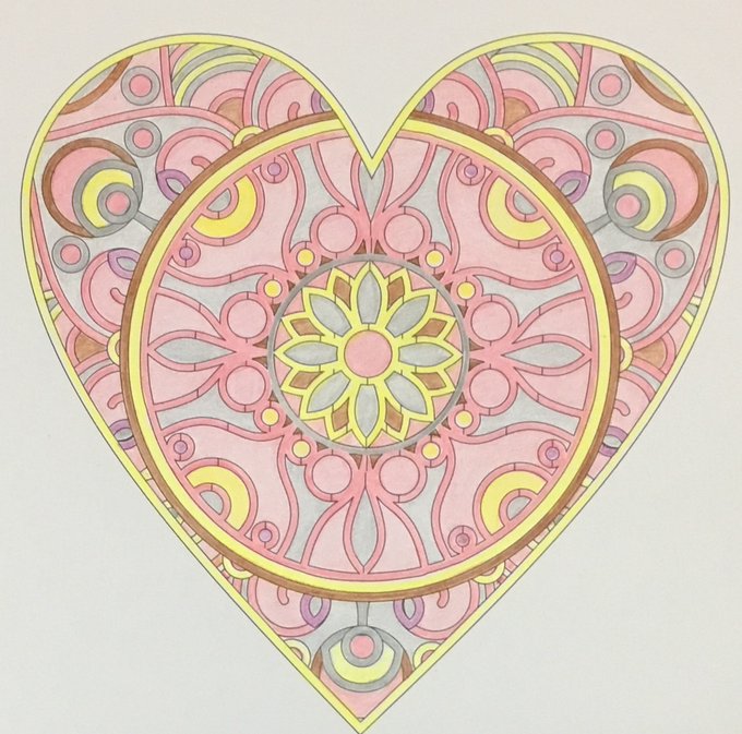 今日の塗り絵😊 過去の塗り絵と共に #マンダラ塗り絵 #ハート