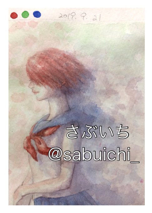 過去絵の三色横並び顔彩塗りを置いておやすみなさい。