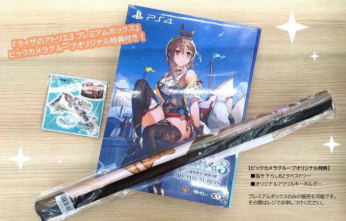 |*˙꒳˙2)ノ またラゾーナ川崎店では、ビックカメラグループオリジナル特典[描き下ろしB2タペストリー]&[オリジナルアクリルキーホルダ]付きのPS4ソフト『ライザのアトリエ3 プレミアムボックス』も販売中です!