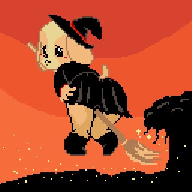 ハロウィン終わりましたがメイプルタウン物語から、ドットでハロウィン仕様魔女ローリィをオリジナルで書いて見ましたが、ちょいエチ?🤔かな?分かりませんがどうぞー🤗