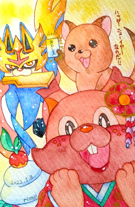 ペンで宝船になにかを書き始めたワラビちゃん!モンに練習に誘われたので急いで書いて夜練に!