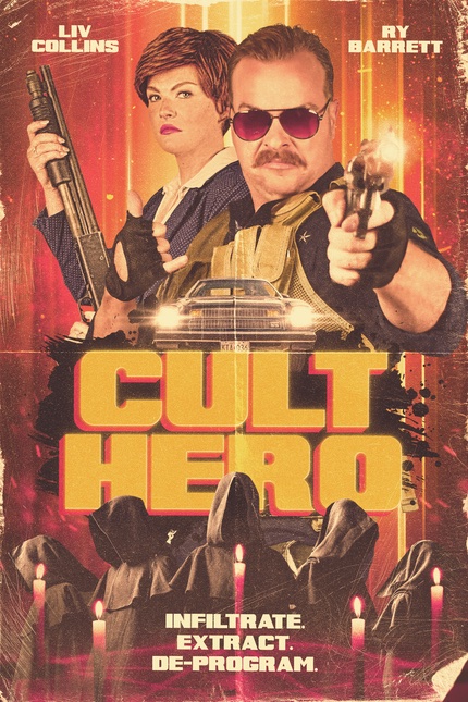 人喰い教団とカルトバスターの死闘を描くアクション・ホラー『Cult Hero』のポスター。不動産業者のカリーは、療養施設を装った食人カルトから夫を救い出すため、洗脳カルト退治の専門家デールと手を組むが…。監督はジェシー・T・クック。ファンタジア映画祭でワールドプレミアとのこと。