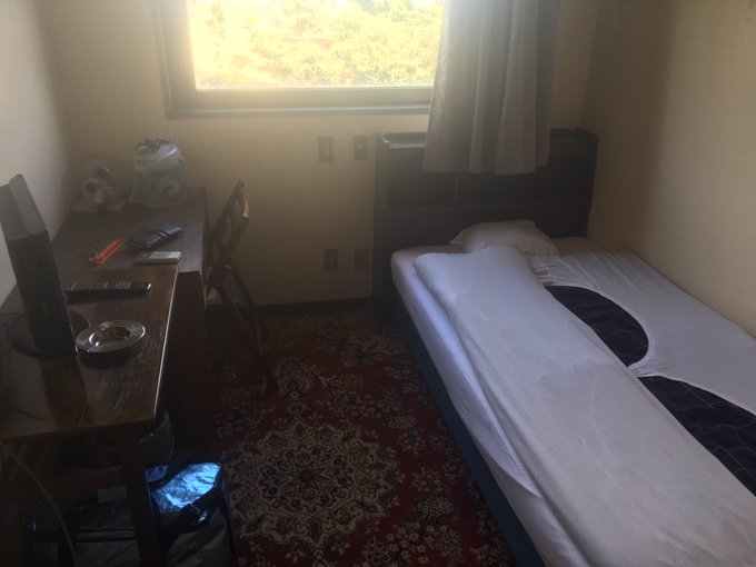 最初この一人部屋だったけど、友達の部屋食いかけのチキンレッグが部屋にあったしなんか出そうだから2人部屋に避難した