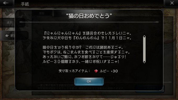 …君は手紙よりルビーが嬉しいニャよね...( = =) 遠い目