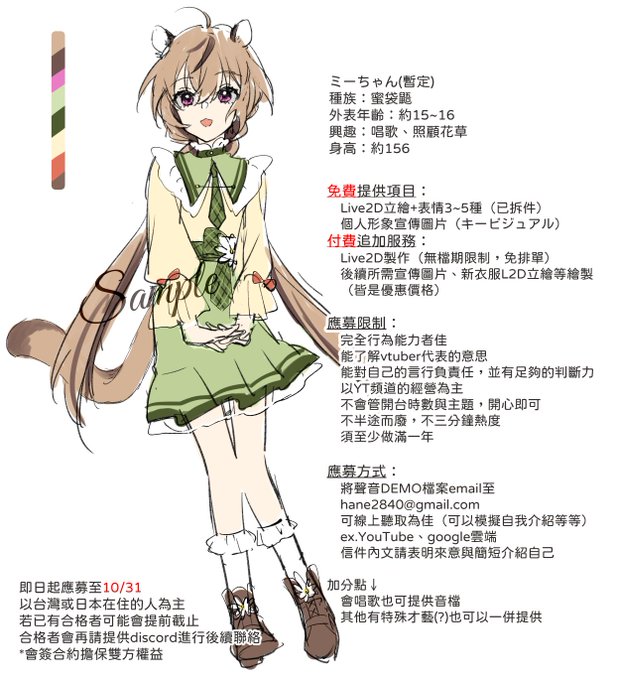 請將聲音DEMO及簡短自介email至hane2840@gmail.com