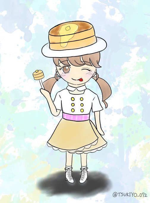 帽子はホットケーキ、服はパティシエ風?スカートは逆さになったクレープ